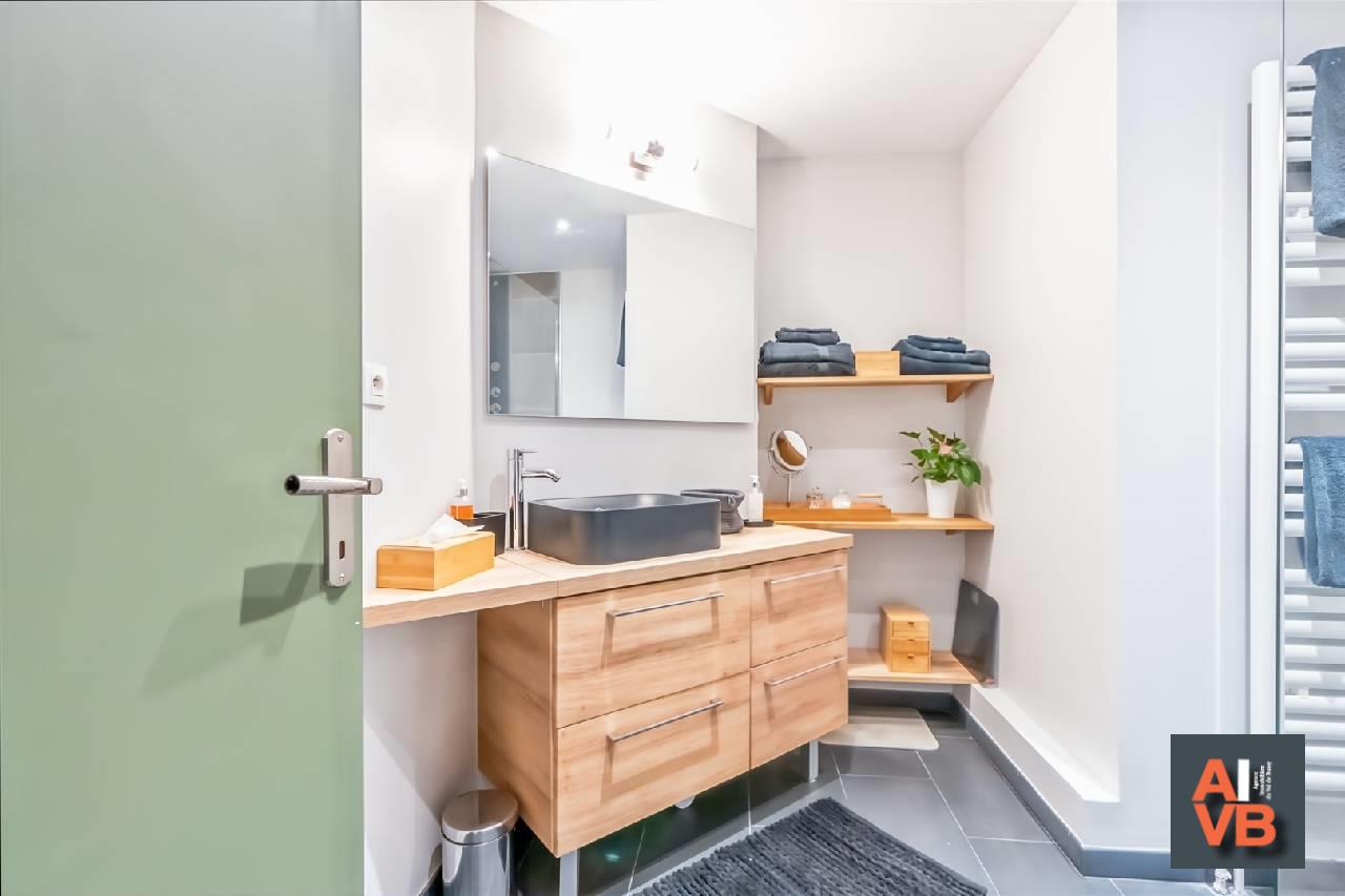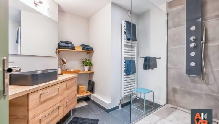 Comprenant Entrée avec Rangement, Cuisine Aménagée et Equipée Semi Ouverte, Buanderie, Salon-Séjour de 30m2 avec Balcon, 2 Chambres avec Rangements, Salle D’Eau avec Douche à l’Italienne, WC Indépendant.