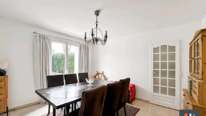 Au rez-de-chaussée : séjour lumineux, cuisine ouverte, salle deau avec wc.