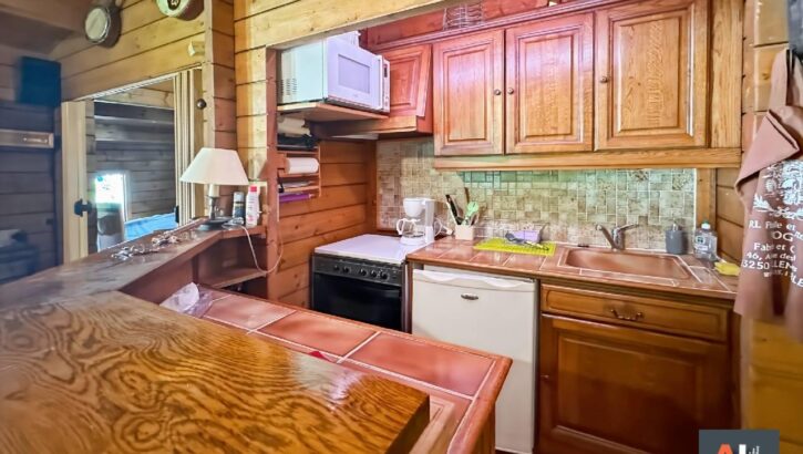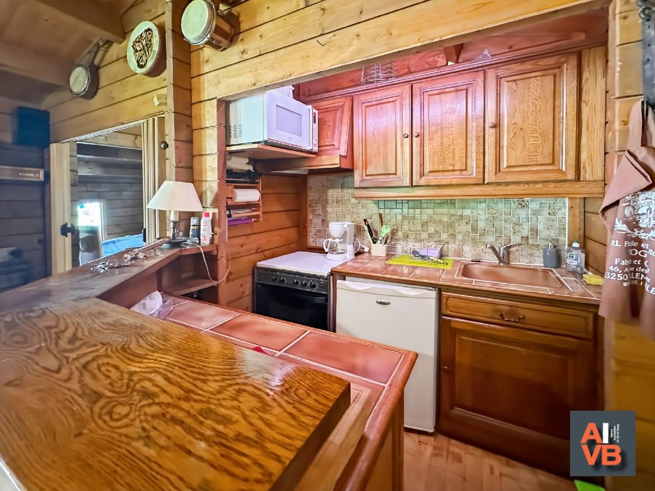 Comprenant séjour avec cheminée donnant accès sur une petite terasse, un espace cuisine aménagée et équuipée, deux chambres, salle de bains, wc.